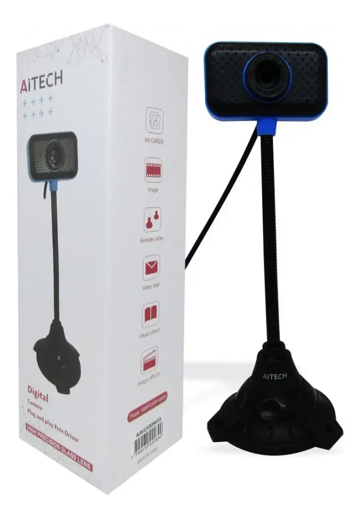 La Aitech Pro Webcam con micrófono y cuello flexible es perfecta para videollamadas, clases online y trabajo remoto, sin complicaciones ni configuraciones difíciles.
